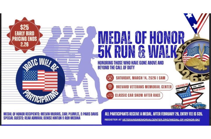This is a charity 5K/Car Show fundraiser to support local military families, veterans in need due to homelessness or economic struggles, as well as support youth scholarship programs. Organized by Maurice Morris, the son of Melvin Morris, a Medal of Honor recipient and resident of Brevard County, in honor of National Medal of Honor Day, 25 March 2026. Cryderman’s Barbeque will have a food truck present at the event with a portion of the proceeds benefitting homeless Veterans of Brevard County. Please consider entering your Antique, Muscle Car, Truck , Custom, Motorcycle, or Home Build into the Show.