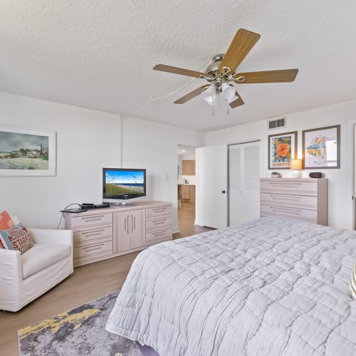 Inside, you’ll find a comfortable and inviting space with a king bed in the primary bedroom and a queen bed in the guest room, making it ideal for couples, remote workers, or small families. Spend your days lounging by the community pool, walking to the beach for sunrise, or exploring nearby downtown Cocoa Beach with its local shops, restaurants, and vibrant atmosphere just minutes away.