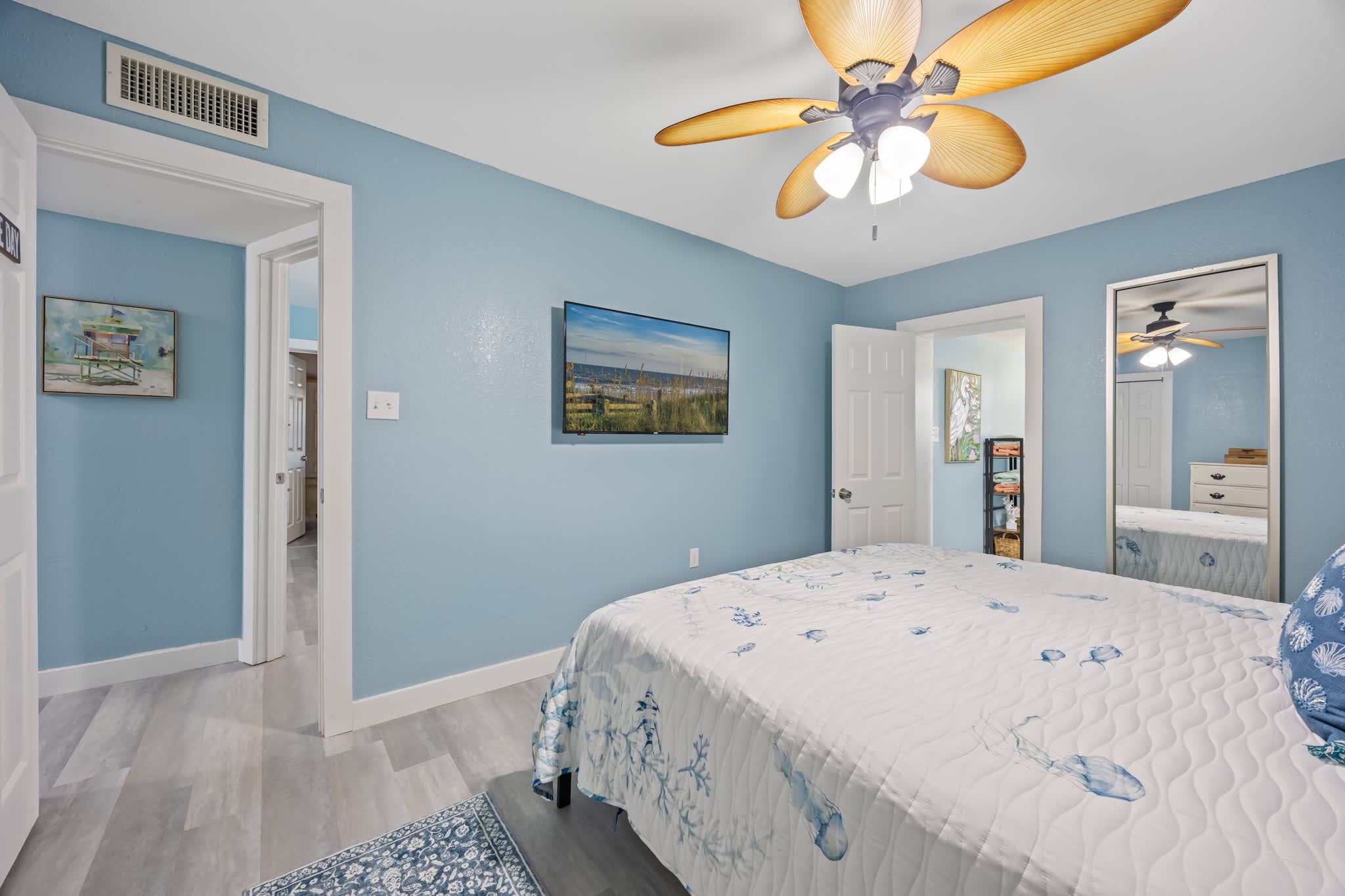 Guests can enjoy the shared backyard space, ideal for lounging outdoors, grilling, or soaking up the Florida sun. The property’s prime location puts you close to the beach, as well as Cocoa Beach’s lively restaurants, shops, and attractions. Whether you’re here to surf, explore Port Canaveral, or simply relax, this inviting home is a wonderful place to make lasting memories.