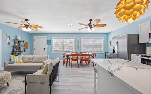 This laid-back Cocoa Beach neighborhood is perfect for guests looking for a fun and relaxed coastal vibe. Just a 5-minute walk brings you to the sandy shoreline, while nearby favorites like Ron Jon Surf Shop and Port Canaveral offer endless entertainment, dining, and shopping. The area blends a beachy, chill atmosphere with plenty of opportunities for adventure.