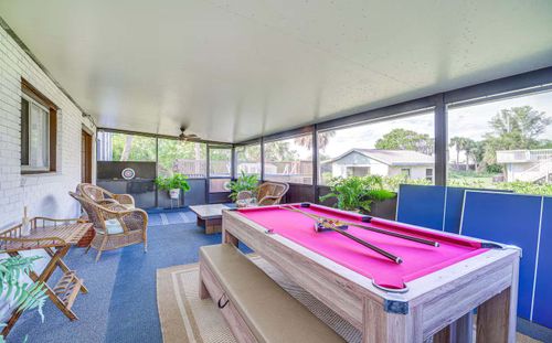 Getting around Cocoa Beach is easy and convenient. Most guests choose to drive, and this home offers driveway parking for up to five vehicles with additional space for trailer parking. Ride-sharing services like Uber and Lyft are readily available, and many local restaurants, shops, and beach access points are just a short drive away. Biking is also popular in the area, with flat streets that make exploring the neighborhood simple and enjoyable.