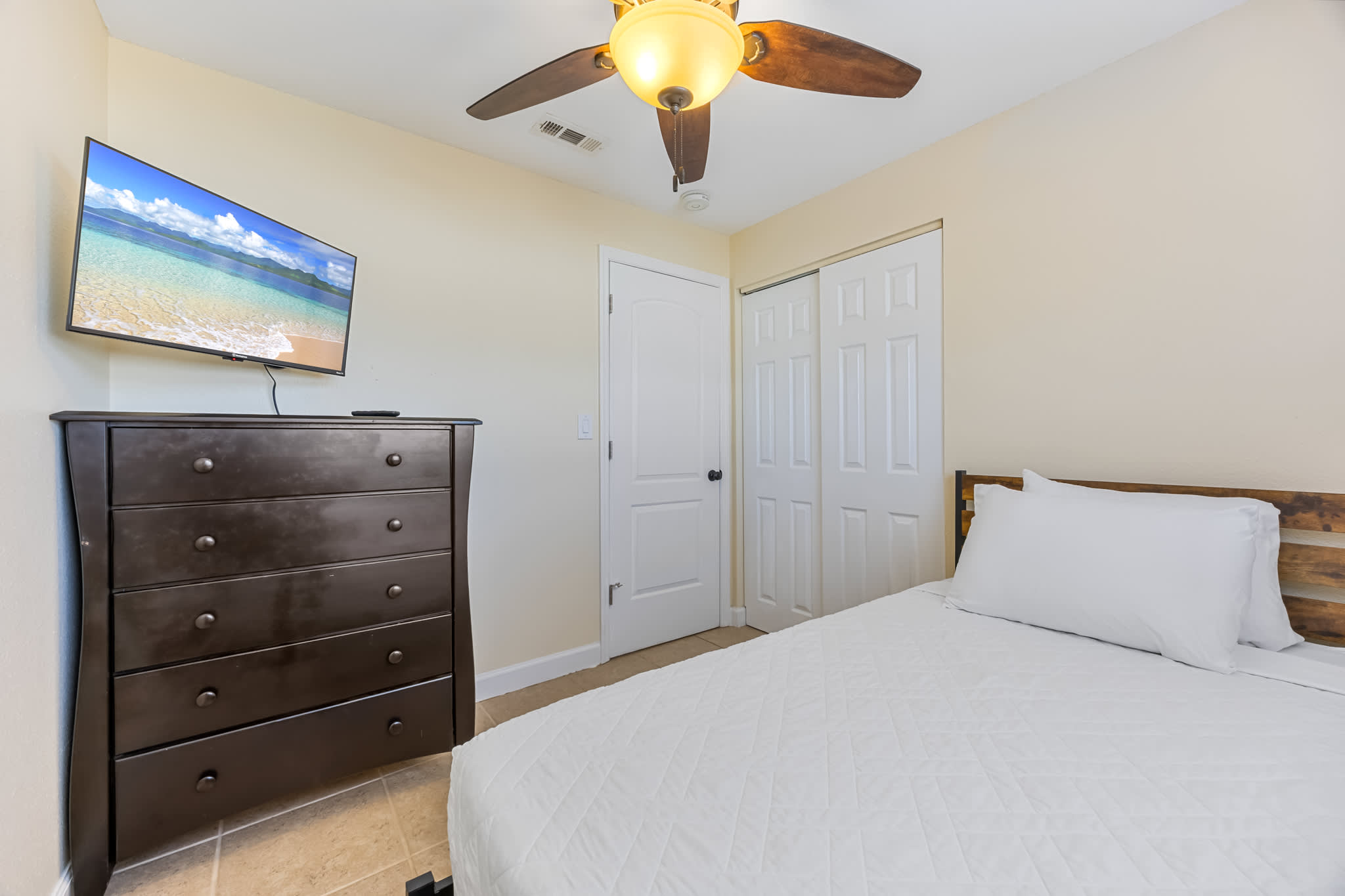 Inside you’ll find a spacious layout perfect for families, couples, or small groups. The primary bedroom features a comfortable king bed, another bedroom offers a queen bed, and the third includes a trundle bed with two twin mattresses, making it easy to accommodate everyone comfortably. The home has been thoughtfully furnished throughout with brand new pieces to create a cozy, welcoming atmosphere for your stay.