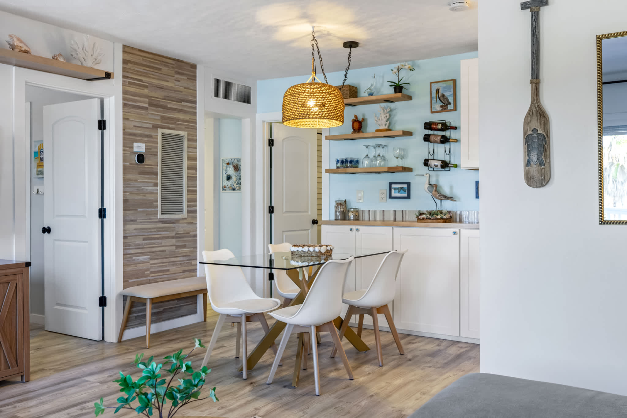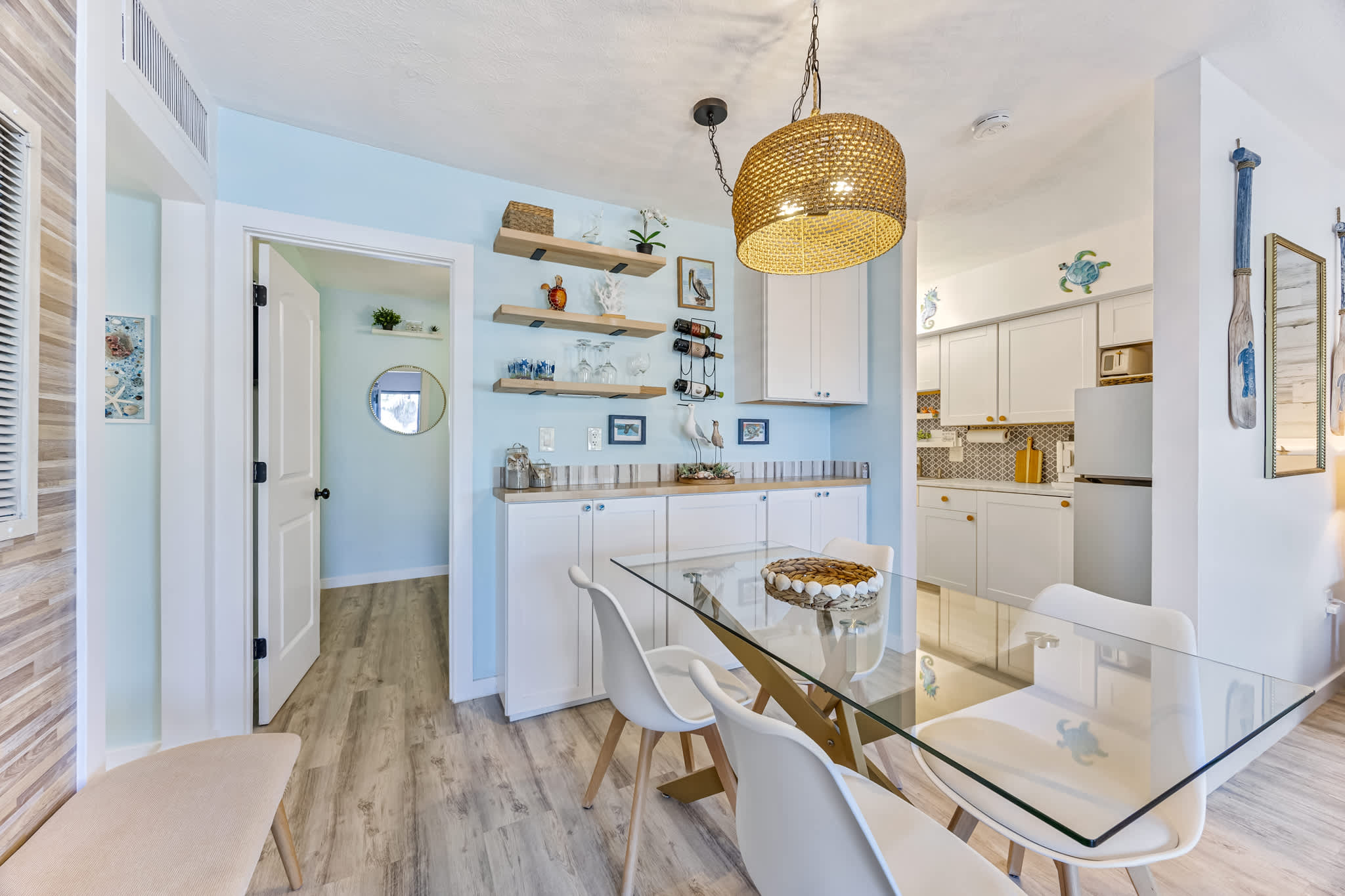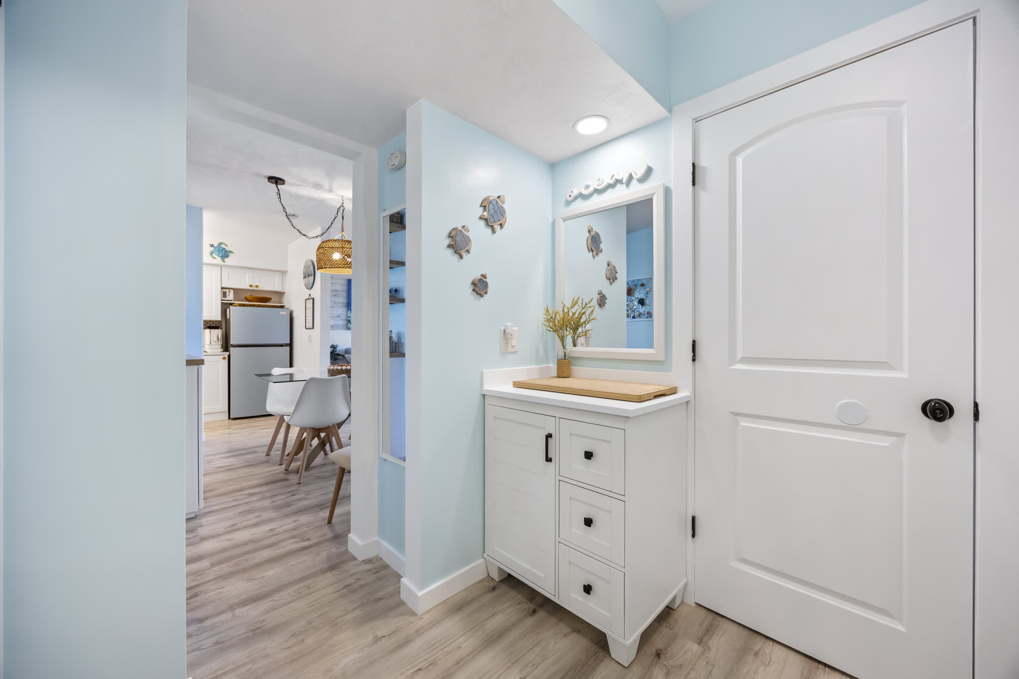 The spacious bathroom includes two vanities and a walk-in shower, ideal for refreshing after a day in the sun. Dive into the heated pool, rinse off after a beach day in the outdoor shower, grill up something delicious on the BBQ located on the pool deck or unwind in the cozy living room while watching the sunrise and sunset right from your front door. There is also onsite coin laundry available. Located in the secluded south Cocoa Beach area, this condo is just a short drive from downtown’s bustling attractions. Enjoy the convenience of a favorite local eateries nearby and don’t miss the excellent, unobstructed views of the space coast’s spectacular rocket launches. With this complex only having 16 units, it makes this beach getaway very secluded. It also includes a designated parking spot. Plus, with close access to Interstate 95, exploring further afield is effortlessly within reach.