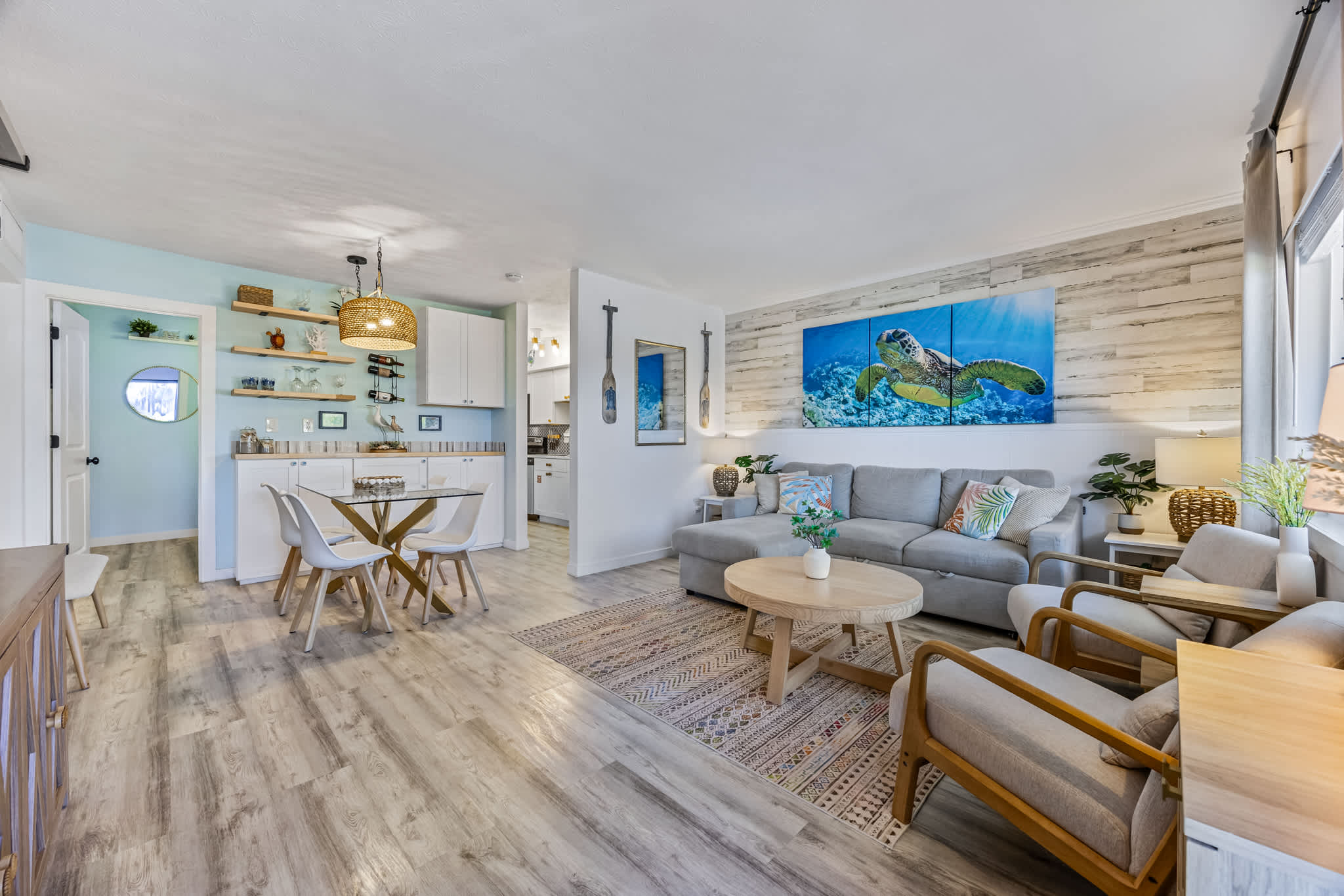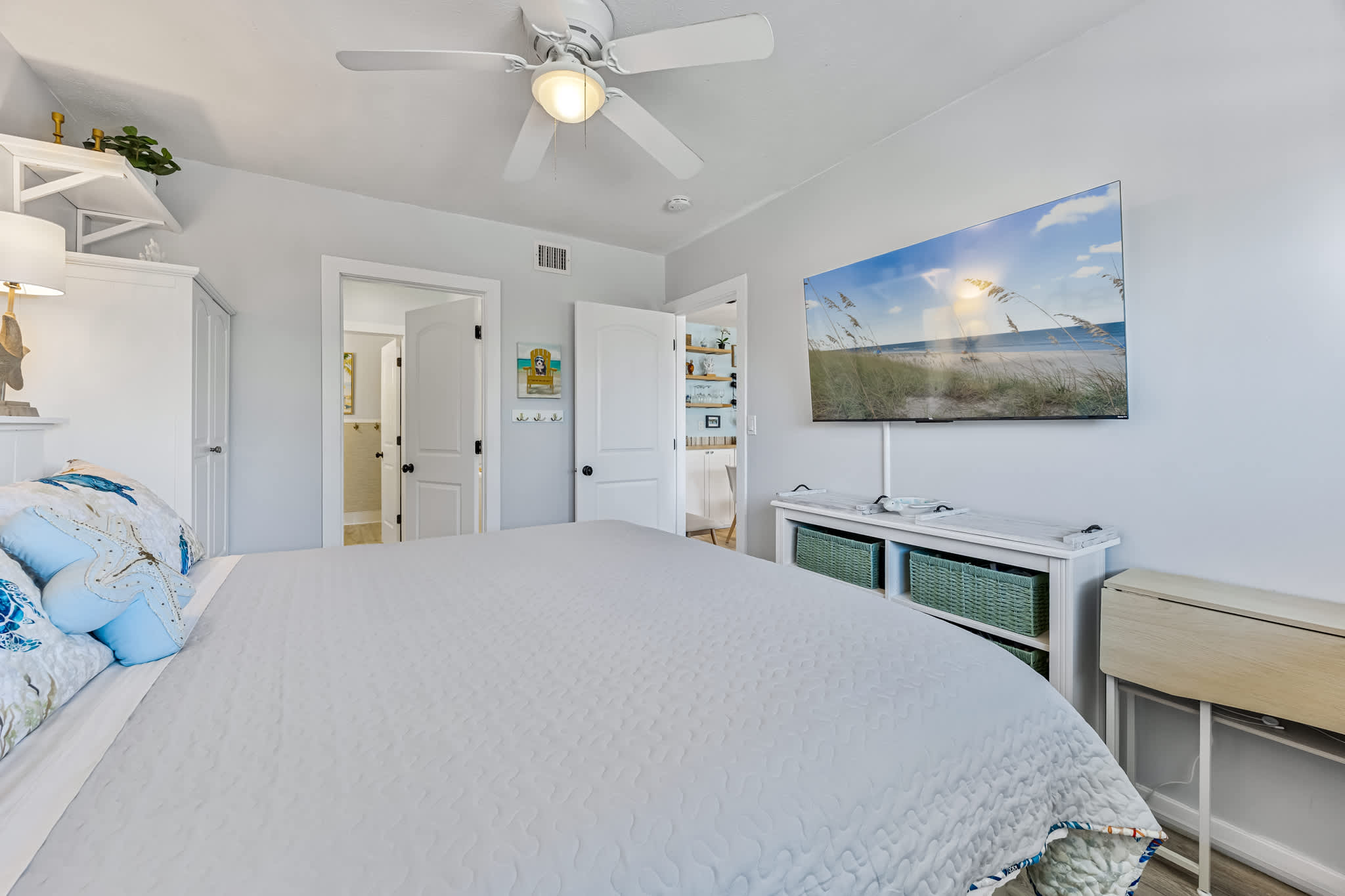 Take a load off in the primary suite on the comfy king size bed or relax in the guest room on the brand new queen size bed. Both rooms have plenty of closet space to unpack and unwind. There is also a very comfortable queen size sleeper sofa in the living room.